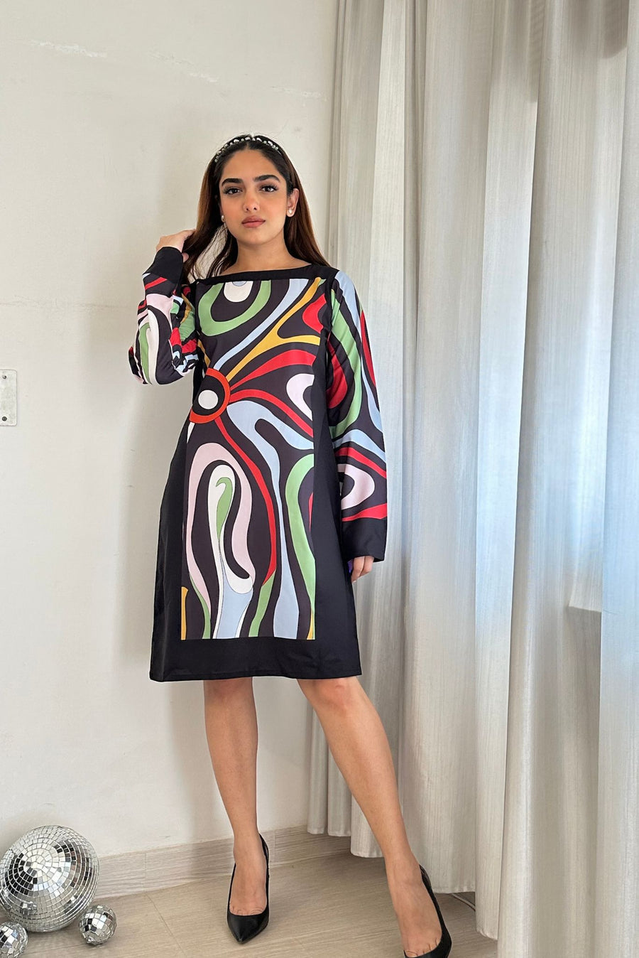 Illuminate your style with the Electric Abstract Dress – a dynamic and eye-catching ensemble featuring bold abstract patterns, ensuring a modern and vibrant look for any fashionable event.