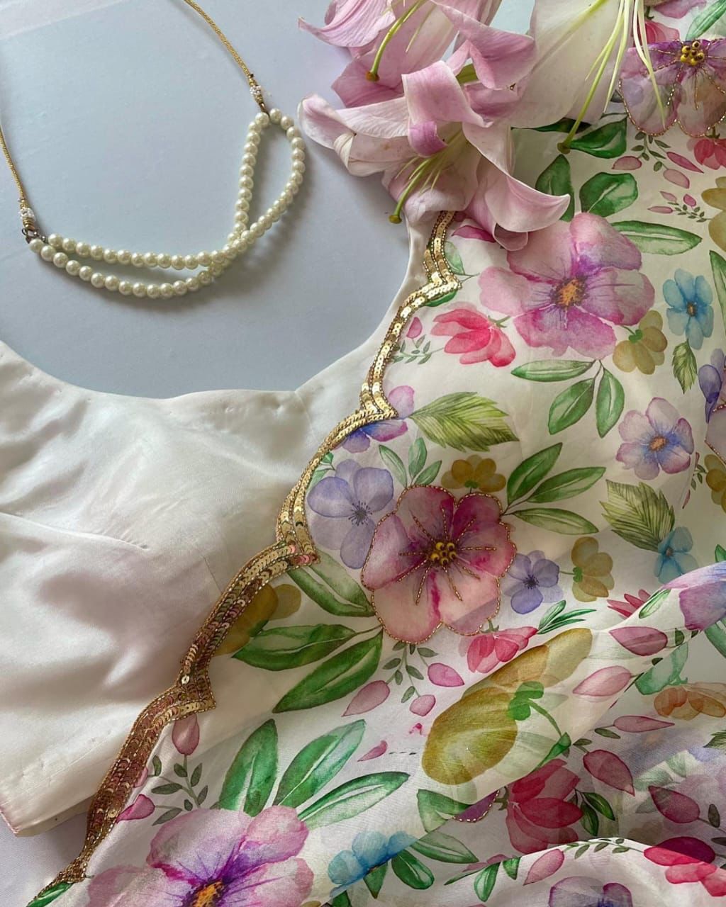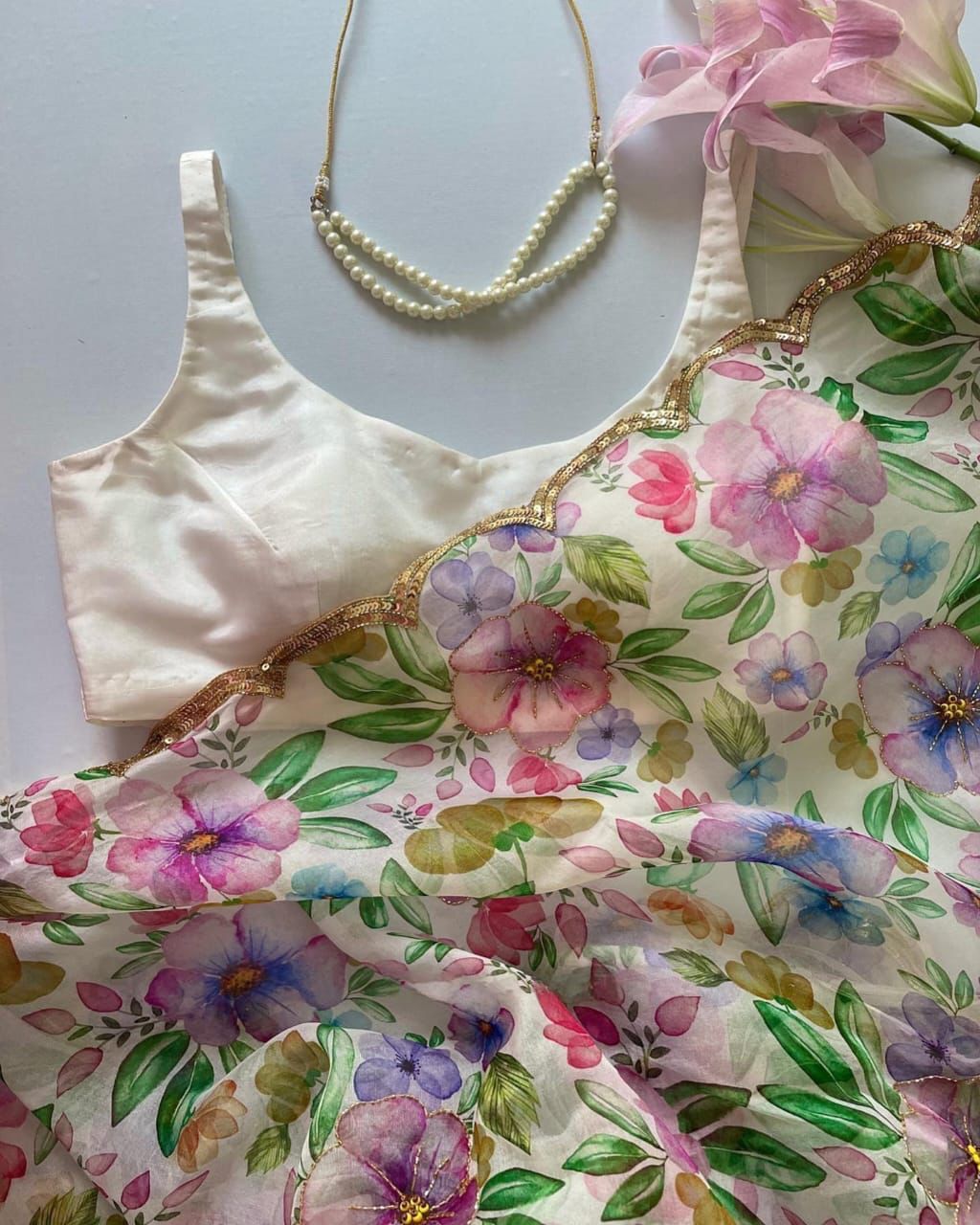 Ready To Wear Mehendi Fancy Gerogette Padding Saree With Blouse
