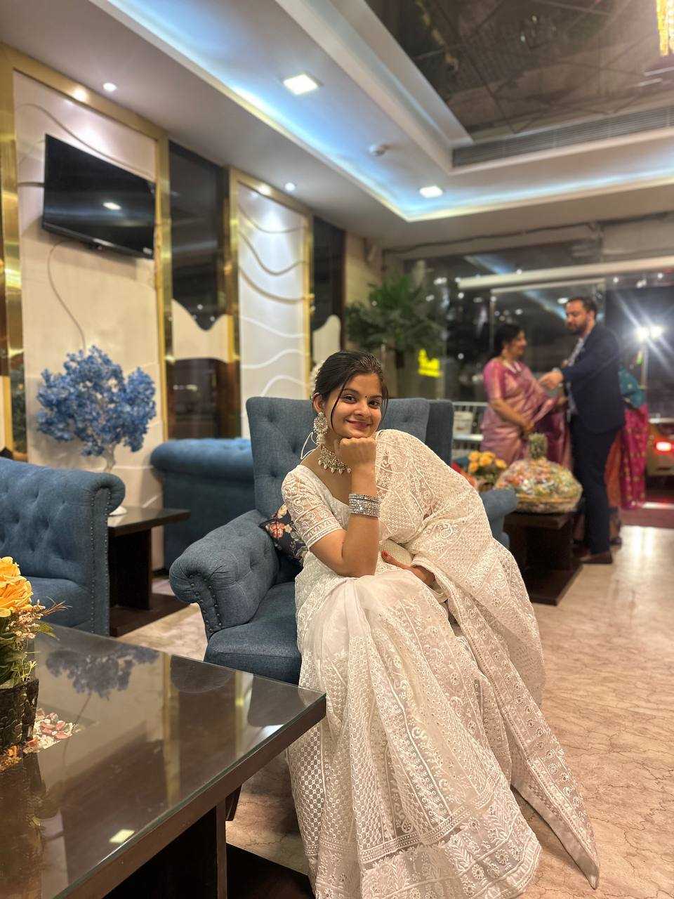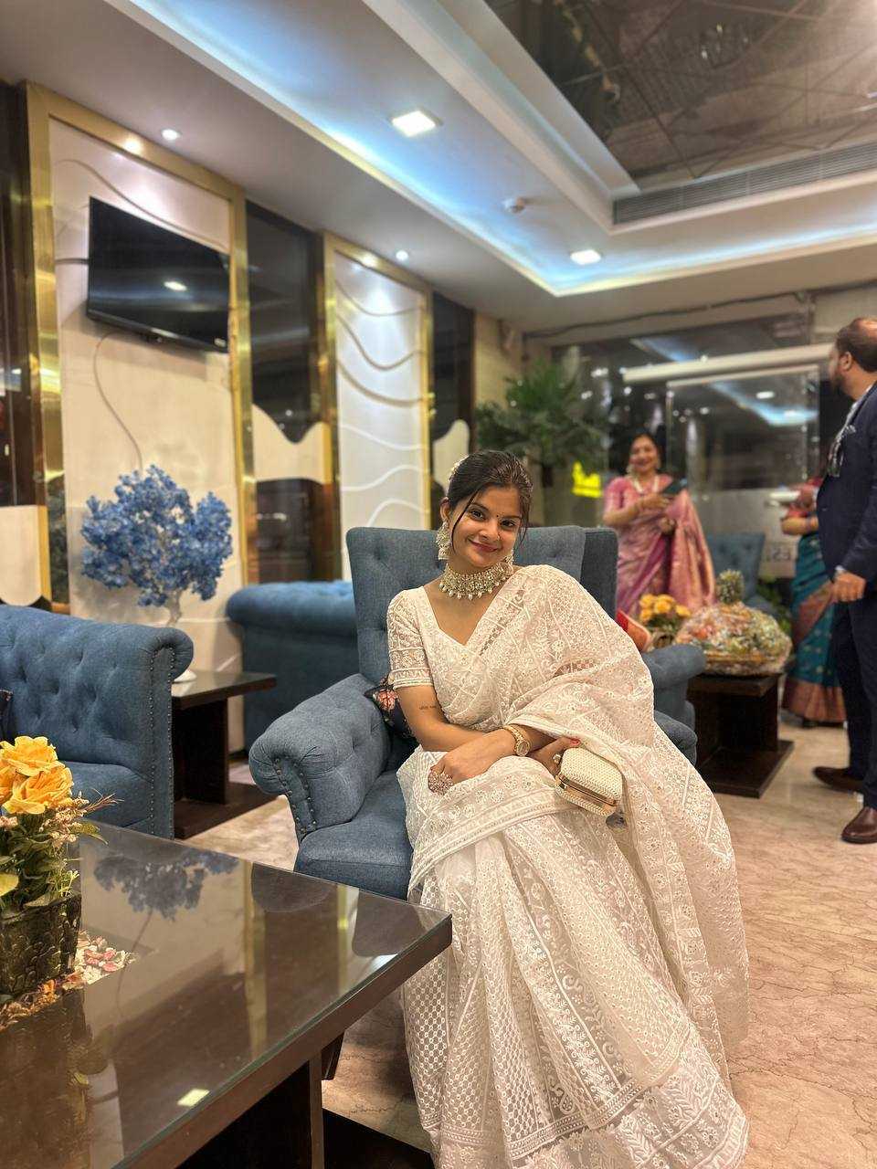 Experience timeless elegance with this premium Pure and Light Organza Saree from the RIN105 NAINA collection. Designed with exquisite craftsmanship, the saree features delicate embroidery thread work enhanced with sequence detailing, along with a back patch that adds richness to the overall look.