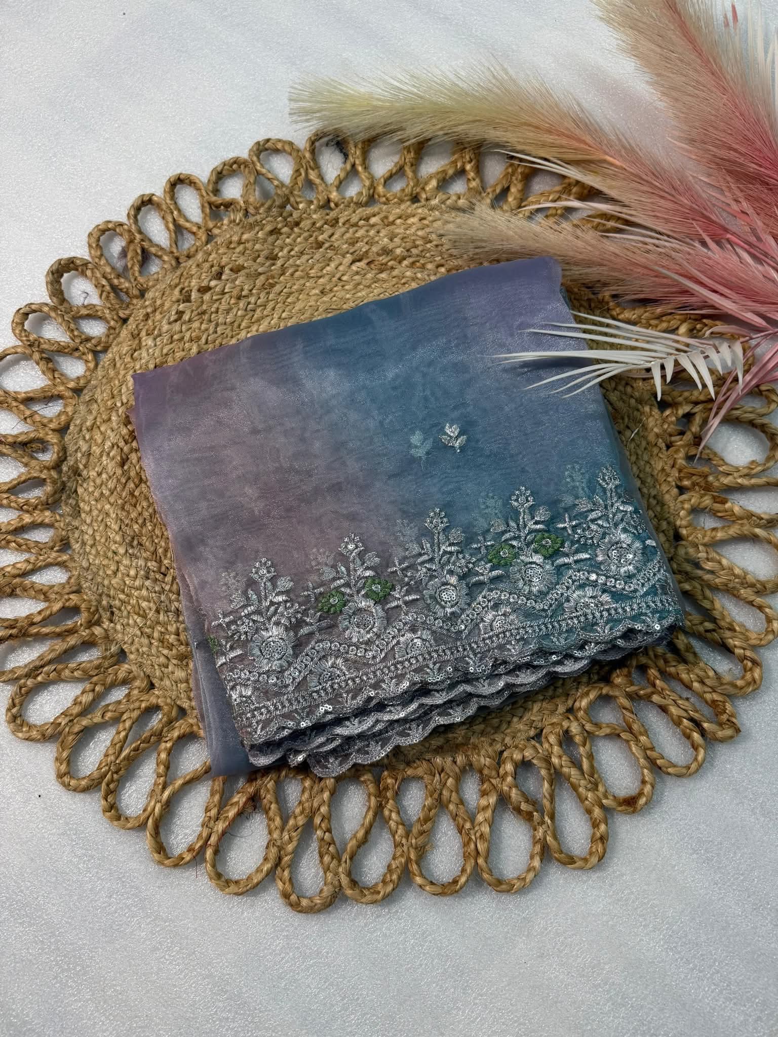 The look is paired with a matching embroidered silk blouse piece (unstitchted), designed to complement the saree’s premium detailing, making it an ideal choice for weddings, parties, festive celebrations, and premium gatherings.